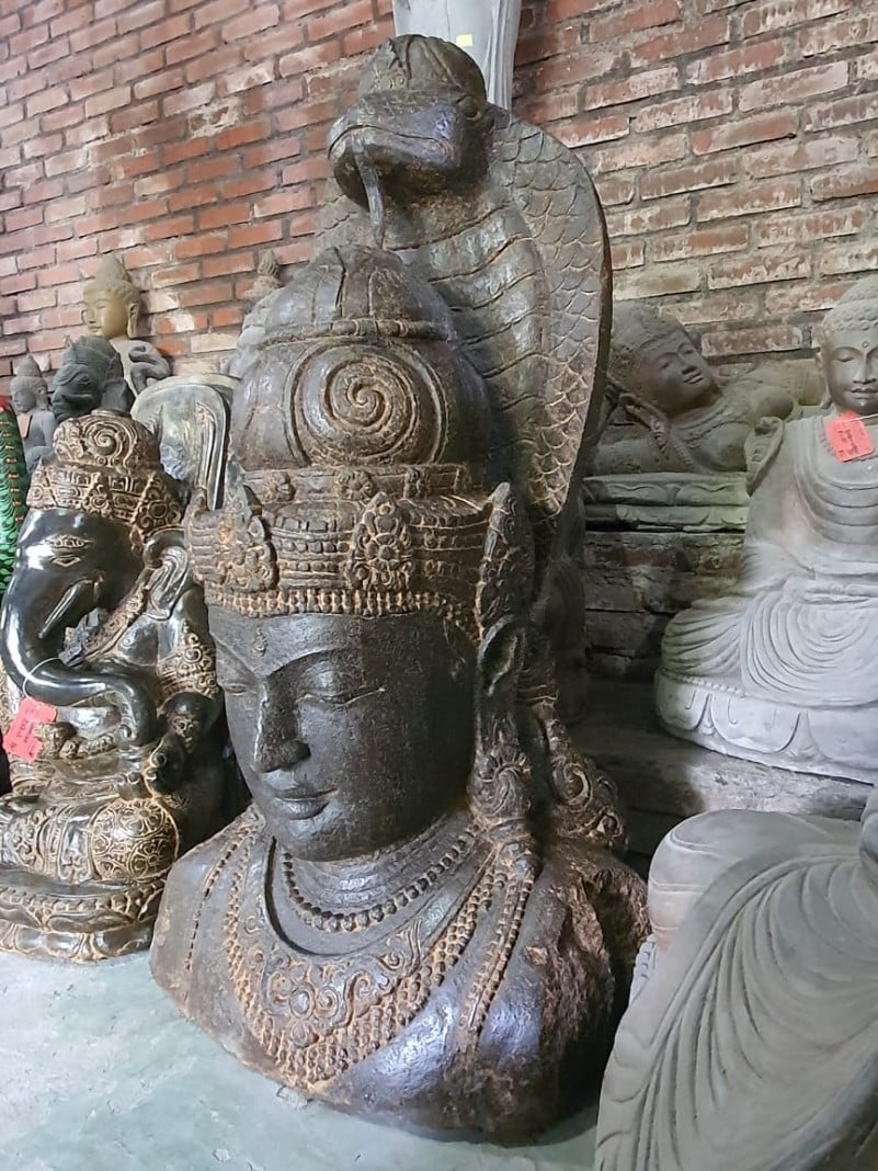 Imposant borstbeeld van de hindoe-god Shiva, met daarboven een Cobra.
